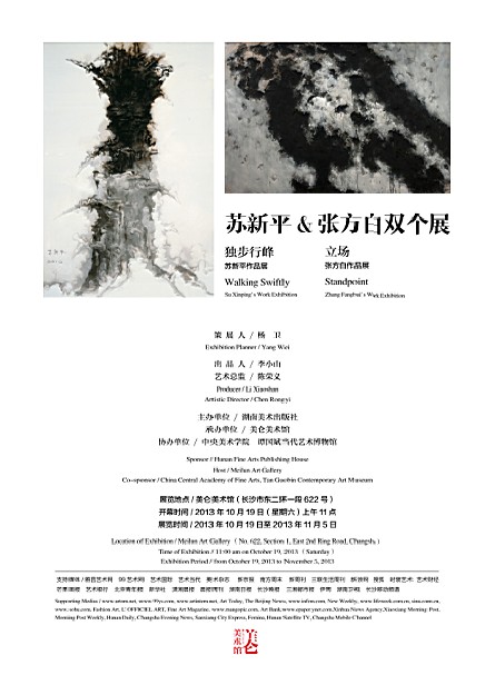 湖南美術(shù)出版社將于10月19日,在美侖美術(shù)館新館舉行“蘇新平&張方白雙個(gè)展”。此次展覽作為美侖美術(shù)館新館開館展覽,集聚了國內(nèi)極具實(shí)力的藝術(shù)家蘇新平和張方白。展覽呈現(xiàn)了蘇新平和張方白從藝以來最為完整、經(jīng)典的文獻(xiàn)性畫冊(cè)。