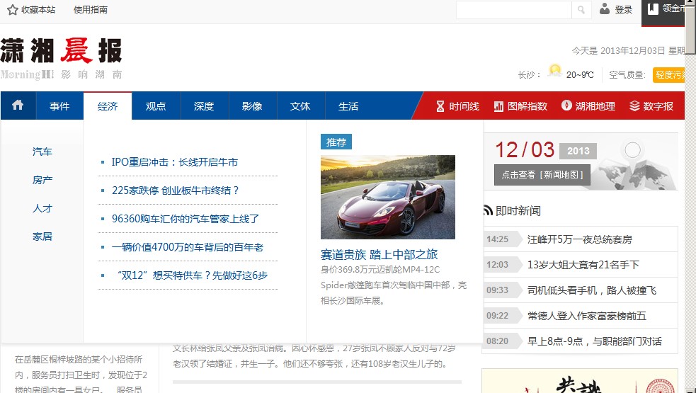 按照中南傳媒的戰略部署,瀟湘晨報今年將強力推出互聯網業務平臺,著手建立線上收費模式,售賣晨報數字版。瀟湘晨報網在內容制造上立足于達到“三個第一”,即第一觀點,第一資訊,第一數據。除了常規的新聞頻道整合了瀟湘晨報系的新聞內容外,網上讀者們還能看到新聞地圖、時間線、圖解指數、湖湘地理等特色頻道。