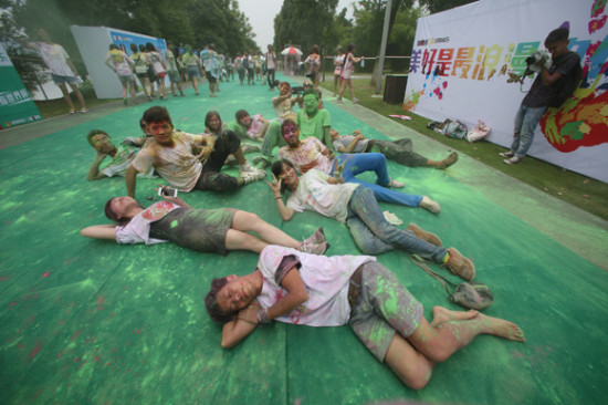 在本次活動最后的1公里,不少彩跑者同“感官全開·2014藝文長沙”特邀嘉賓、香港行為藝術家Kim一齊“瞓身”(粵語“躺下”)在橘洲島上,用身體來感受長沙大地,用不同的角度來觀看橘洲上方的天空和彩跑者們的笑臉,這也標志著“感官全開·2014藝文長沙”系列活動的完美收官。