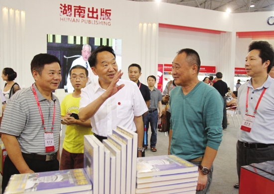 8月2日下午2時(shí)許,第24屆書博會(huì)湖南代表團(tuán)展館,在代表團(tuán)團(tuán)長(zhǎng)朱三平,湖南出版投資控股集團(tuán)黨委書記、董事長(zhǎng),中南傳媒董事長(zhǎng)龔曙光的陪同下,國(guó)家新聞出版廣電總局黨組書記、副局長(zhǎng)蔣建國(guó)詳細(xì)了解湖南參展情況。